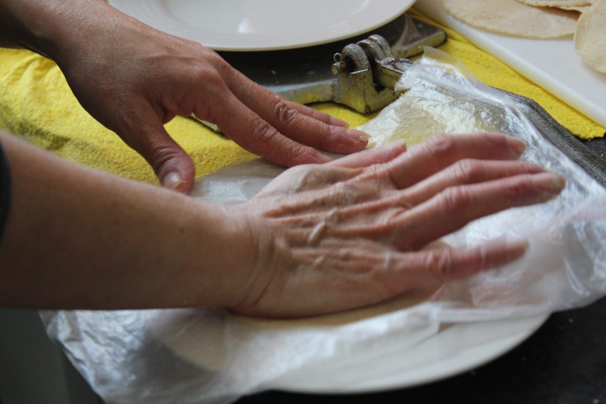 הבסיס של האוכל המקסיקני הוא הטורטיה, כל מאכל שהם מכינים הם מניחים על טורטיה ולכן בכל בית תמצא את המכשיר להכנת הטורטיה, שהופך את החיים להרבה יותר קלים. מכיוון שלרובנו הישראלים אין את המכשיר, לורנה גם הראתה לי שיטה נוספת לשטח את הבצק.