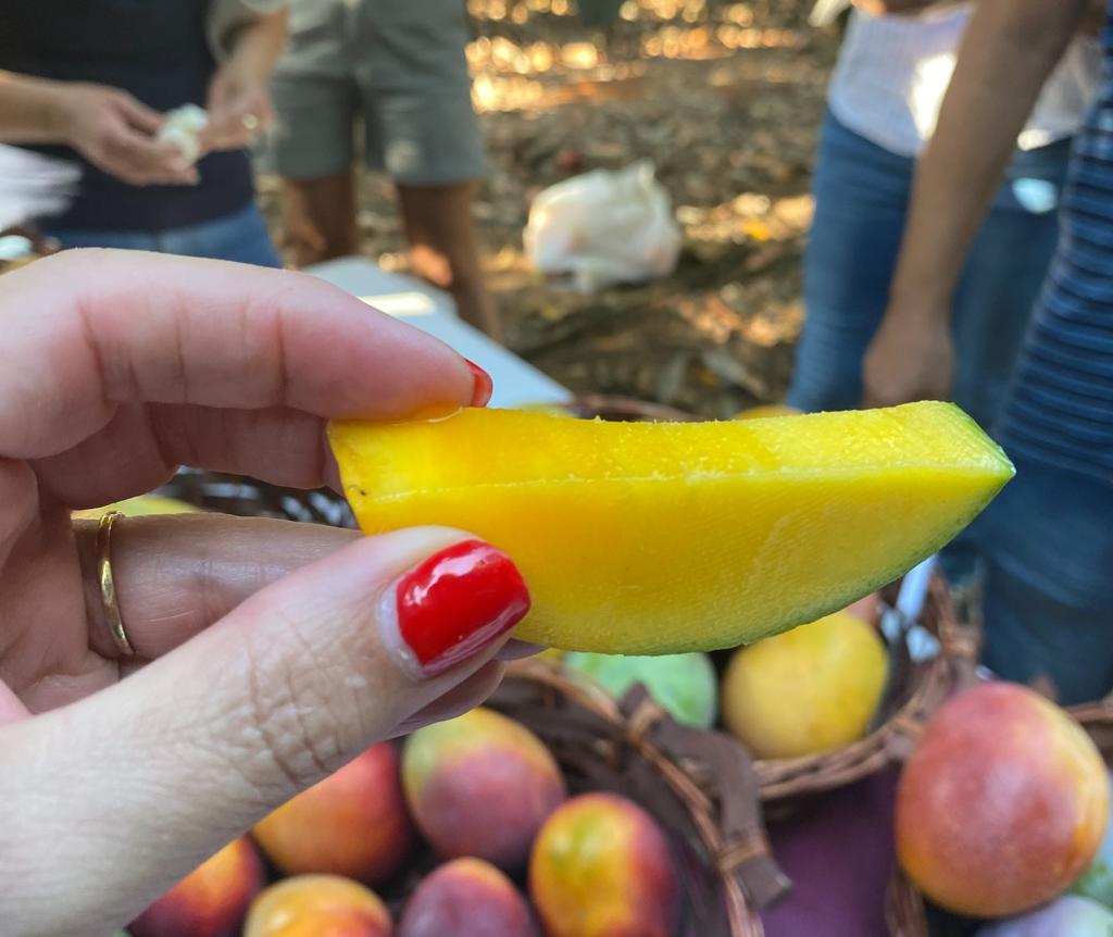 ביום קייצי חם ומהביל מצאתי את עצמי נוסעת עם חבורה נפלאה של אנשי קולינריה ללמוד על המנגו. אין מקום יותר טוב לעשות את זה מאשר במכון וולקני ליד ראשון לציון. בלב מטעי המנגו חיכה לנו חוקר המנגו, ד"ר יובל כהן. הוא סיפר לנו על תוכניות ההשבחה של פירות וירקות בכלל ועל המנגו בפרט. השבחה היא תהליך ארוך מאוד ובדר"כ ממש לא כלכלי מכיוון שהוא יכול לקחת לעיתים גם עשר שנים ויותר עד שמצליחים לגדל פרי או ירק מוצלח.