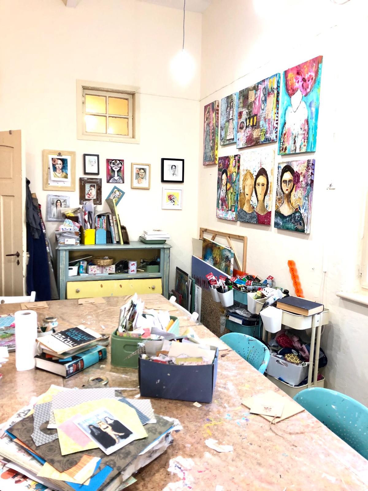 חלק מהאומנים מעבירים גם סדנאות במקום ואנחנו התנסנו בעבודה שנקראת מיקס מדיה שהעבירה לנו שירלי. זה היה סיום מושלם ליום מושלם